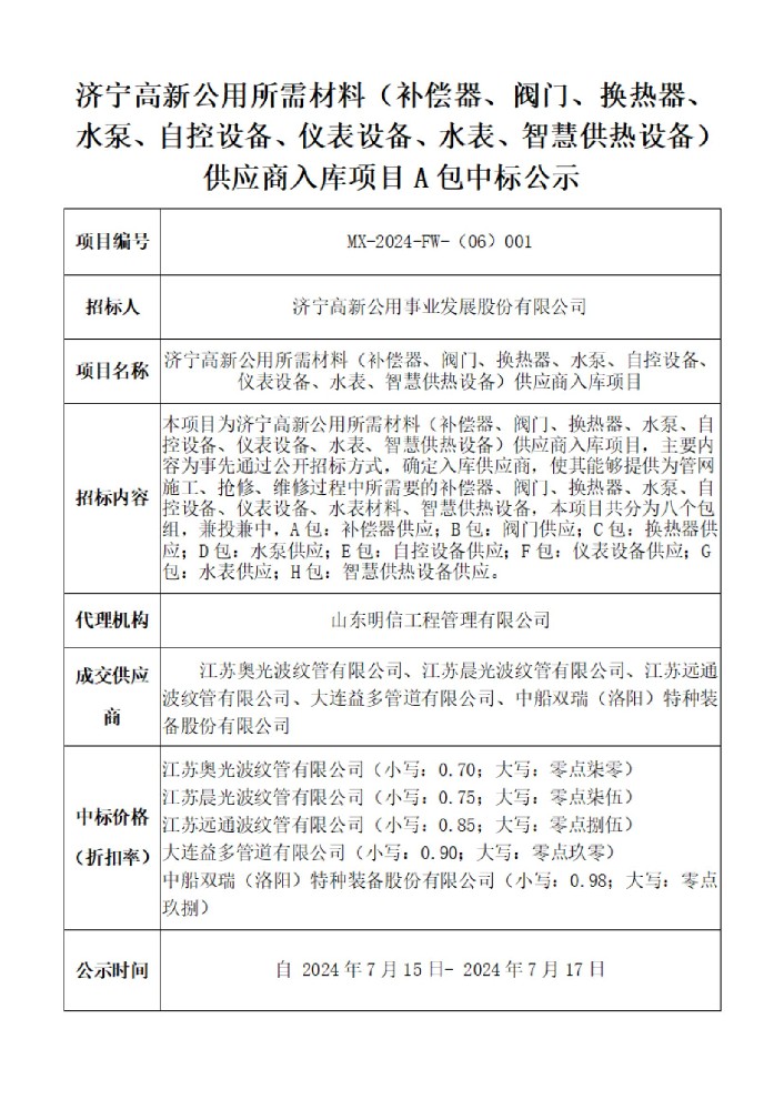 上一篇:濟(jì)寧高新公用所需管材供應(yīng)商入庫(kù)項(xiàng)目成交公示
